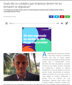 Conheça Rodrigo Arruda, consultor de Marketing Digital da WSI no Brasil. Leia a sua entrevista à Eu Rio, em 25 de Abril de 2021, quando falou sobre os cuidados que as empresas devem ter ao tentarem se digitalizar.