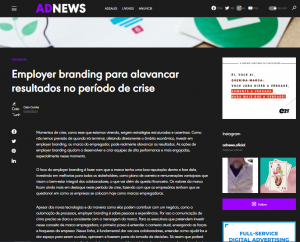 O foco do employer branding é fazer com que a marca tenha uma boa reputação dentro e fora dela, investindo em melhorias para todos os stakeholders, como plano de carreira e remunerações vantajosas que visam o bem-estar integral dos colaboradores, o que vai além do quesito financeiro. Os valores da marca ficam ainda mais em destaque neste período de crise, fazendo com que os empresários tenham que se questionar em como as empresas se colocam hoje como marcas empregadoras. Confira matéria completa no Portal ADNews!