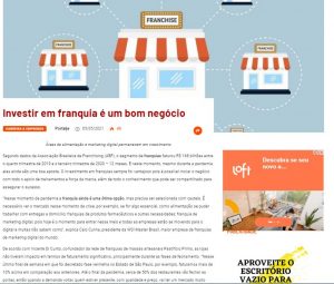 Segundo dados da Associação Brasileira de Franchising (ABF), o segmento de franquias faturou R$ 168 bilhões entre o quarto trimestre de 2019 e o terceiro trimestre de 2020 – 12 meses. E neste momento, mesmo durante a pandemia elas ainda são uma boa aposta. O investimento em franquias sempre foi vantajoso pois é possível iniciar o negócio com todo o apoio de treinamentos e força da marca, além de todo o conhecimento que pode ser compartilhado para assegurar o sucesso. Confira matéria completa no Portal Jornal Eletrônico!