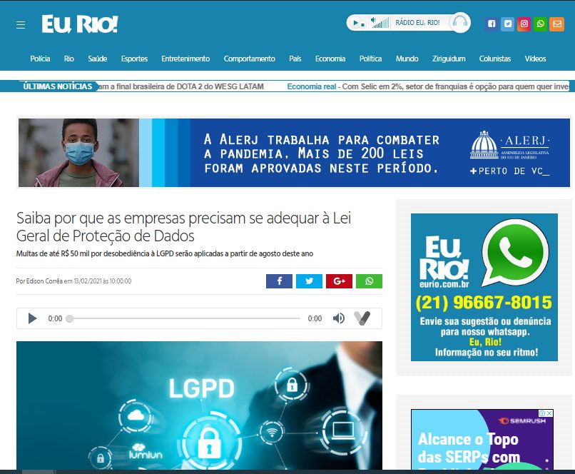 “Se uma empresa controla e é responsável pelos dados pessoais que mantém, ela é o controlador desses dados. Se, por outro lado, alguém detém os dados pessoais, mas alguma outra empresa decide e é responsável pelo que acontece com esses dados, então essa outra empresa é o processador desses dados”, explica Vanessa, consultora na WSI Uniquely. Confira a entrevista na íntegra no site Eu, Rio!