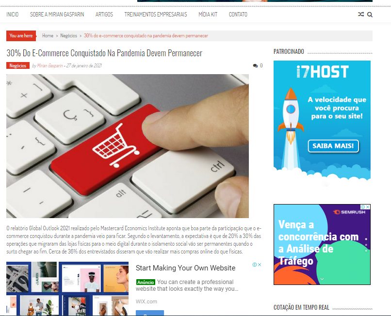 De acordo com a Associação Brasileira de Comércio Eletrônico (ABCOMM) durante os primeiros meses da pandemia no Brasil, 107 mil novas lojas foram abertas no comércio eletrônico. Antes, esse número era de 10 mil por mês. Confira a matéria completa no Blog Mirian Gasparin!