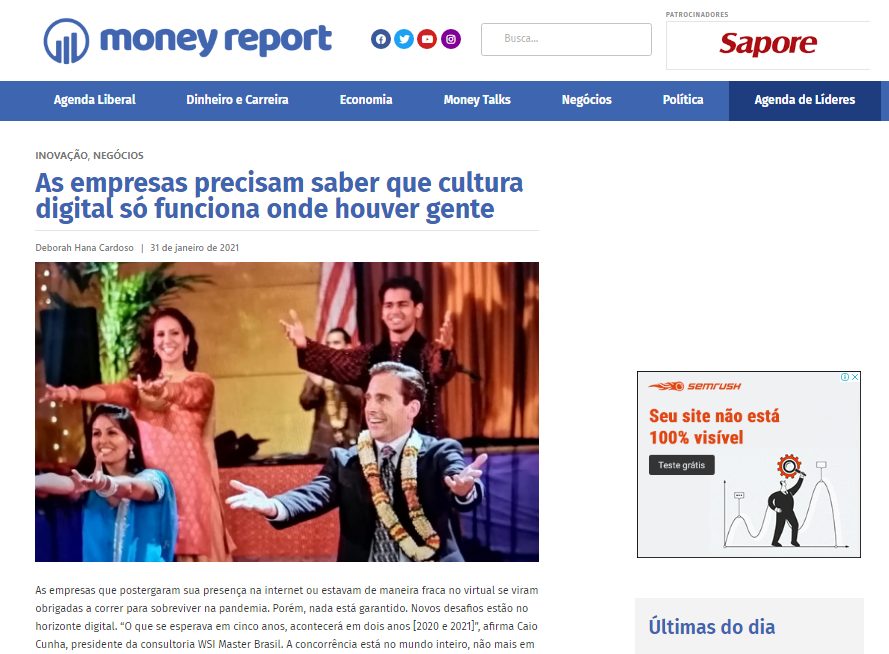 As empresas que postergaram sua presença na internet ou estavam de maneira fraca no virtual se viram obrigadas a correr para sobreviver na pandemia. Porém, nada está garantido. Novos desafios estão no horizonte digital. “O que se esperava em cinco anos, acontecerá em dois anos [2020 e 2021]”, afirma Caio Cunha, presidente da consultoria WSI Master Brasil. Confira matéria completa no site Money Report!
