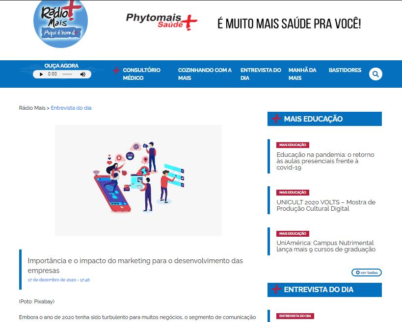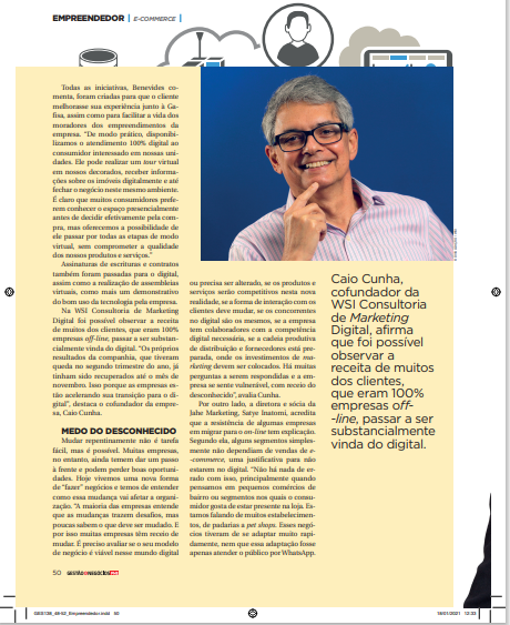 Embora o ano de 2020 tenha sido turbulento para muitos negócios, o segmento de comunicação e marketing se destacou, pois, a digitalização de muitas marcas se fez mais do que necessária para que o negócio sobrevivesse. Sobre o assunto, a jornalista Tânia Jeferson conversa com o presidente da WSI Brasil, Caio Cunha. Confira matéria na íntegra no site Radio Mais!