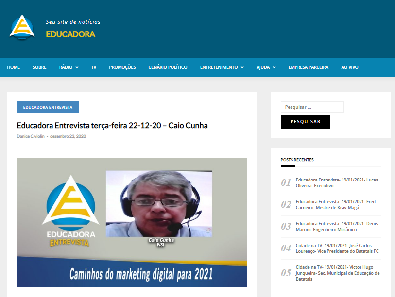 Caio Cunha, diretor WSI foi entrevistado pelo jornal Educadora Rádio e TV sobre o tema “Caminhos do Marketing Digital para 2021”, confira na íntegra a matéria no site Educadora Online.