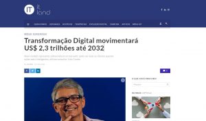 Novo modelo representa sobrevivência no mercado: cada vez mais os clientes querem ações mais inteligentes, afirma consultor Caio Cunha. O conceito Data Driven e a consequente monetização desses dados cresce exponencialmente e cada vez mais deve fazer parte dos negócios em todos os níveis. O mercado de transformação digital vai movimentar US$ 2,3 trilhões até 2032, com crescimento médio de 14,2% ao ano, de acordo com o relatório Market Research Report da Fact.MR. Confira a matéria completa no portais: itlandgrupomidia.com, www.decisionreport.com.br, revistalivemarketing.com.br, portalmakingof.com.br & revistamarketing.com.br