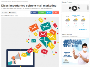 O evento Dicas importantes sobre como e-mail marketing dá resultado acontece no próximo dia 23 de setembro, às 11h, on-line e gratuito. O consultor de Marketing Digital da WSI, Marcelo Herskovits, propõe tratar o tema sobre como o e-mail marketing continua sendo uma das formas mais simples e eficazes do marketing on-line para uma empresa. Confira matéria completa no Portal Arapongas Mais!